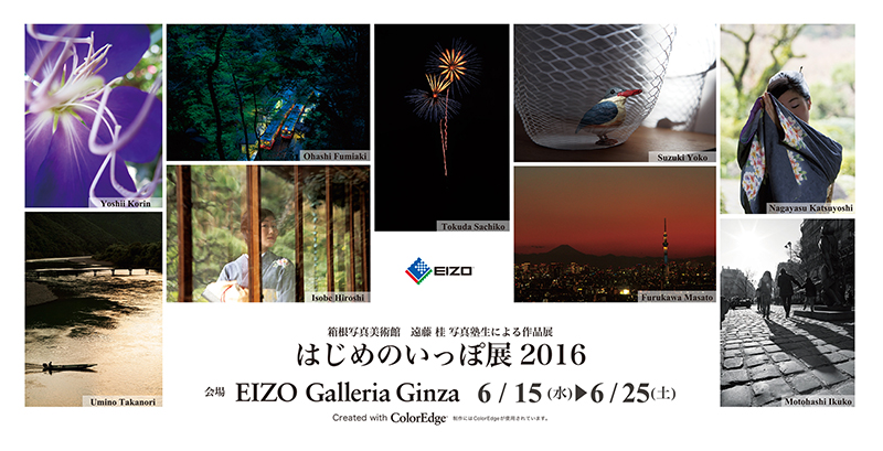 | 2016年はEIZOガレリア銀座の会場協力のもと、EIZOのColorEdgeを使用し制作したプリントと高画質モニターで作品を展示。 出品者8名と講師2名の10名が個性豊かな作品をご高覧いただければ幸いです。 |